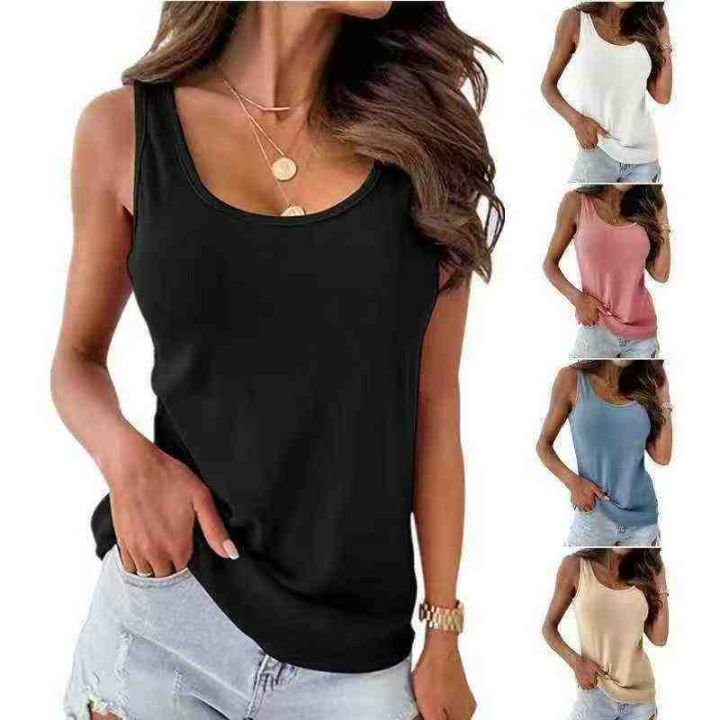 1.7清电商仓回收930件亚马逊爆款跨境冰丝纯色宽松大码V领无袖休闲背心T恤,...