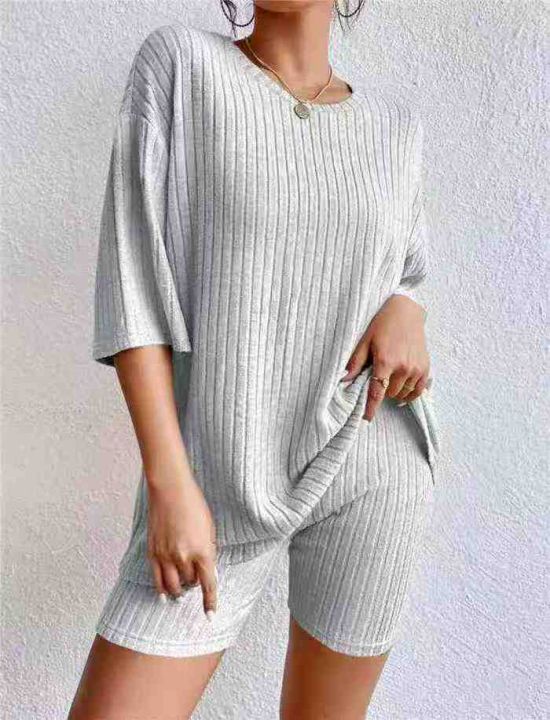 6.9清电商仓回收1723套外贸跨境热卖宽松大码短袖短裤套装,码数S-2XL。面料...