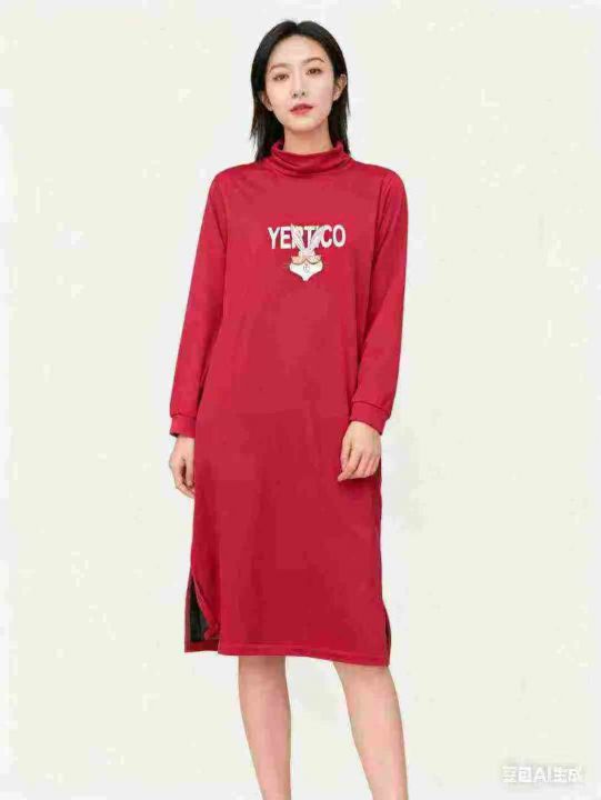 韩版学院风字母卫衣裙宽松休闲甜美长裙温柔长袖加绒连衣裙女秋冬新款【图条...