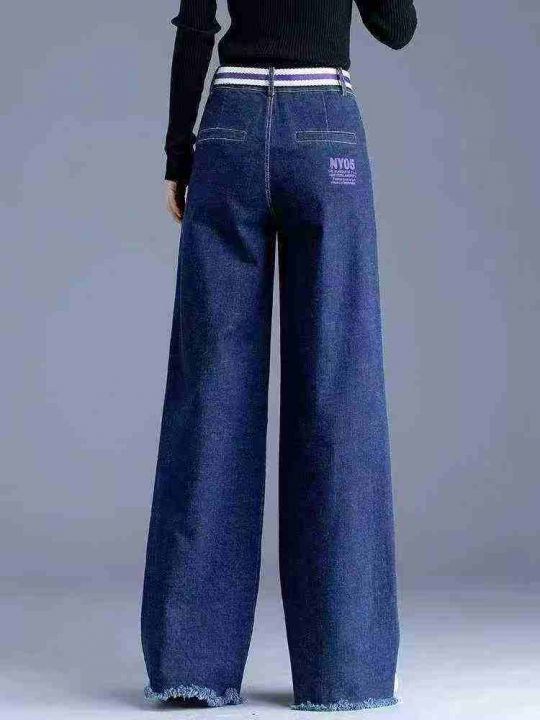 ☕️两色阔腿牛仔裤女直筒宽松裤子高腰甩裤新款大码大裤脚拖地裤 182条全清...