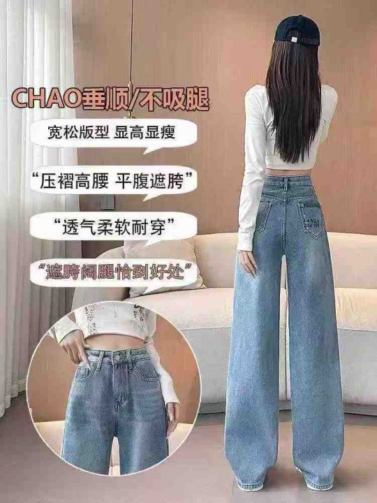 浅蓝高腰显瘦宽松阔腿加绒牛仔裤,单款单色,独立包装,数量8200条,(3个...