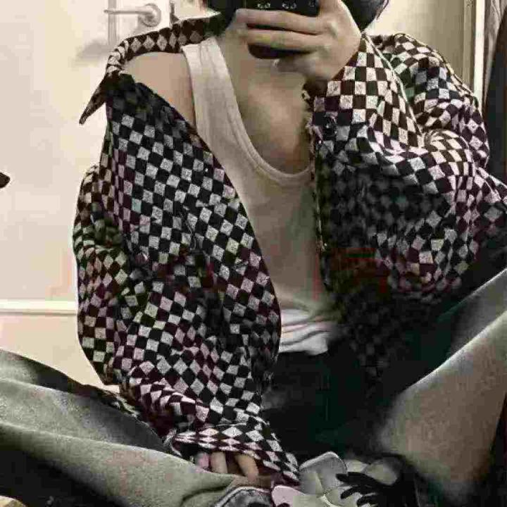 贝吉棋春秋款外套女ins美式复古棋盘格子polo领外套,数量1445件,码数m-2xl...
