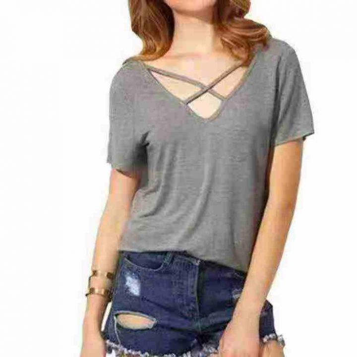 清仓处理3.9分货+1800件大码女装夏季V领交叉宽松休闲T恤上衣 单款三色,XL-...