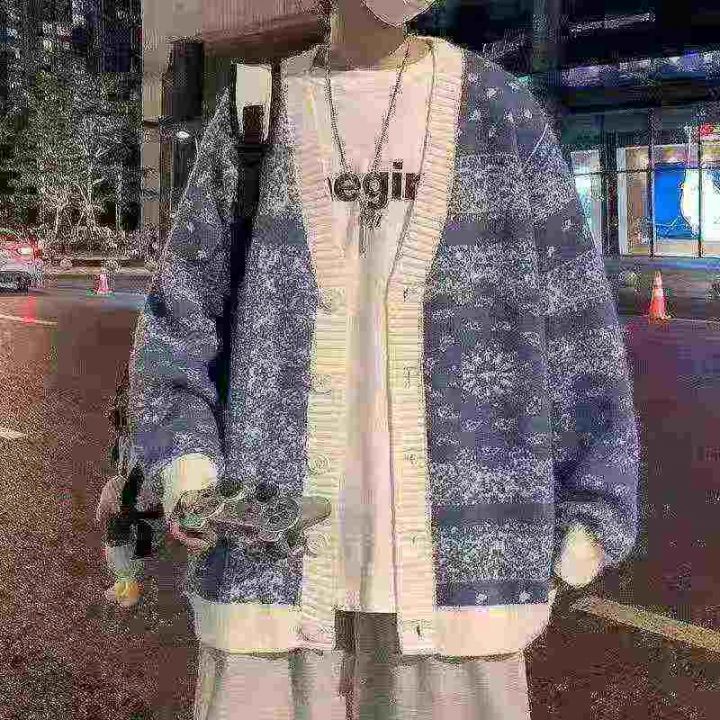 全清7.9分货+1男士春秋针织开衫外套时尚港风宽松大版型男装休闲帅气潮男毛...