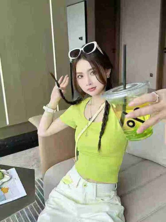 ☕️纯棉美式国潮设计感三条杠修身短袖t恤女夏季新款简约基础款上衣1500件...