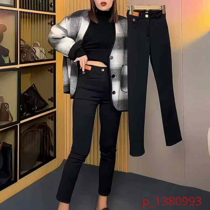 上新全清:9.9一件纯色休闲显瘦高腰弹力加绒烟管长裤,[爱心]35件左右,码...