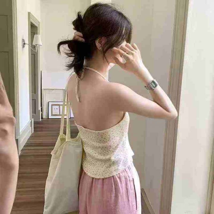全清3.8元天猫在售款543件高品质清新甜美纯欲风碎花绑带挂脖背心,螺纹纯棉...