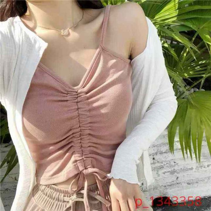 87件[红包] 设计感抽绳性感辣妹吊带背心,内有软衬垫,单款两色,独立包装...