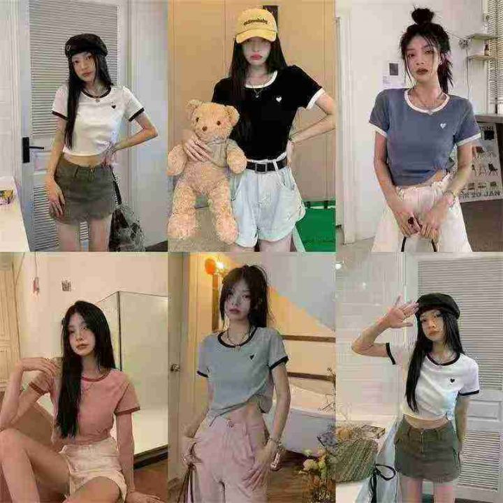 [福]韩版甜辣bm风圆领短袖1040件,小众设计感撞色爱心刺绣,码数1~2码,单...