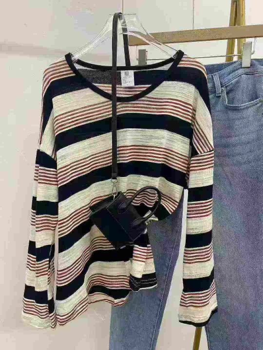 休闲慵懒风长袖585件,全清6.9,分货7.5,面料柔软,撞色条纹,宽松版,微...