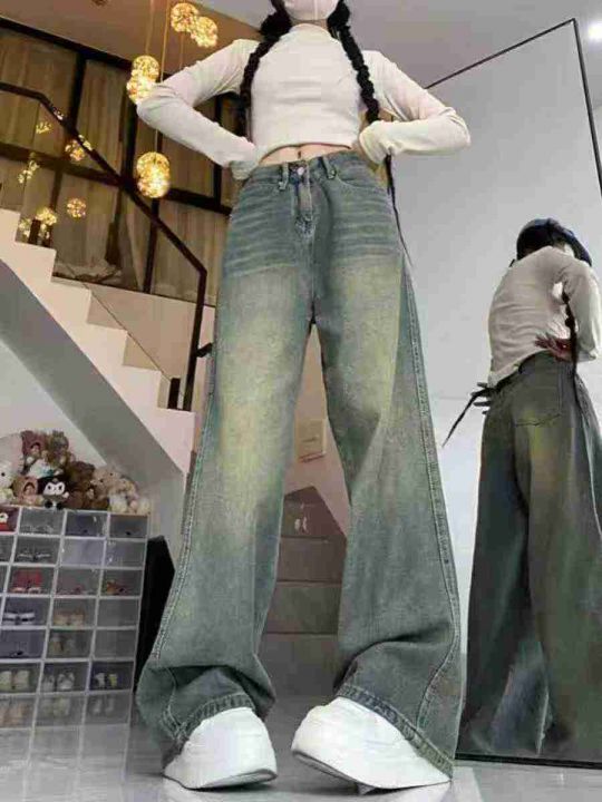☕️大码胖mm美式复古牛仔裤女夏季新款高个子做旧直筒高腰垂感窄版阔腿拖地...