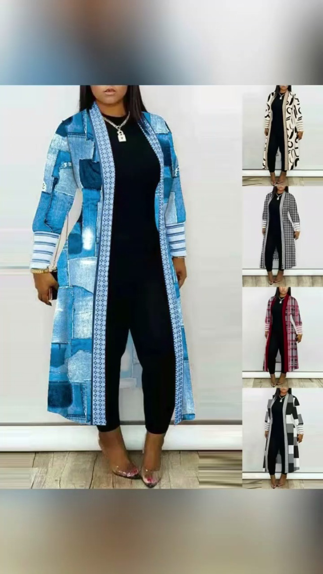 [爆竹][爆竹]5.5清700件左右欧美休闲长款印花风衣开衫外套,图片款,全部加...