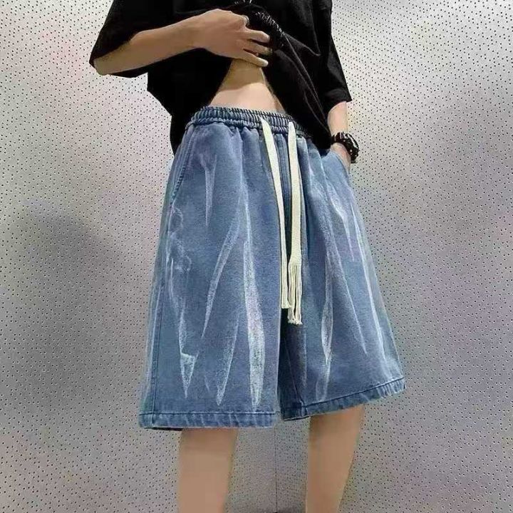 清9.8扎染牛仔短裤男士夏季松紧带直筒宽松中裤美式潮牌五分裤子男款,数量2...