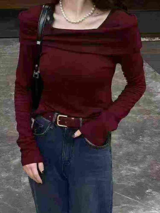 天猫精选360件女装上衣打底衫,春秋洋气修身纯欲辣妹性感U领鱼骨德绒长袖上...
