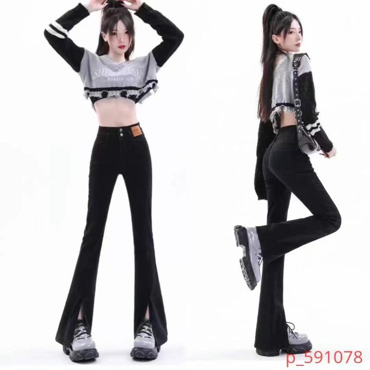 高腰设计感开叉女士显瘦弹力微喇牛仔裤,整款4个颜色,独立包装,数量500条...