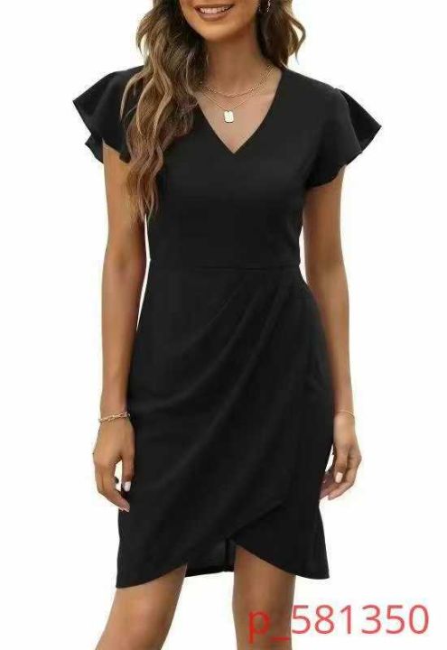 全清8.9亚马逊跨境外贸气质优雅夏季新款荷叶袖不规则连衣裙礼服裙DRESS裙,...