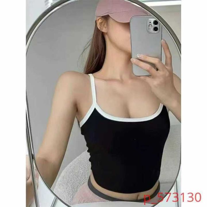 欧美风夏季新款性感纯欲风拼色高腰短款修身弹力打底小吊带,质量好弹力好后...