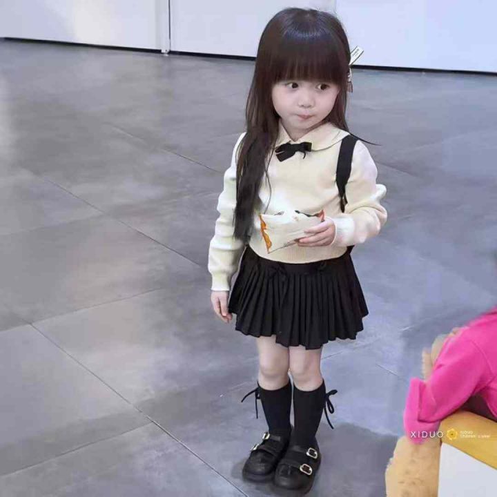 女童毛衣套装裙秋冬洋气百褶裙甜美时髦中小女孩针织两件套,独立包装带吊牌...