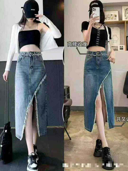 牛仔裙女半身裙中长款裙 新款高腰显瘦毛边a字包臀裙,数量2690条,尺码s-3x...
