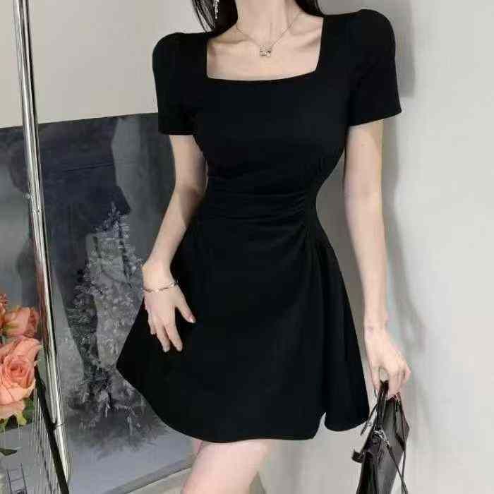 上新全清:7.9一件高级感赫本风方领收腰褶皱连衣裙,[爱心]1030件左右,S-M...