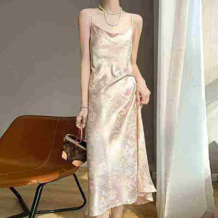 7.8分货➕1高级感气质提花连衣裙女夏季中长款法式浪漫吊带裙子,码数S-L,...