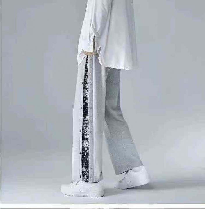 全清6.8美式复古排扣薄款卫裤男生潮牌宽松直筒抽绳可束脚可阔腿休闲长裤,...