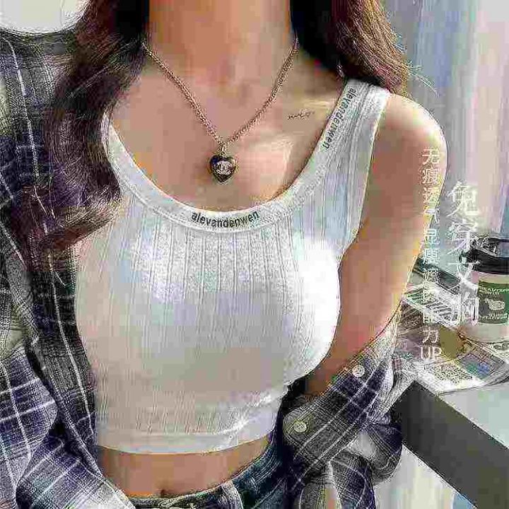 ☕️带胸垫字母设计感美背无钢圈外穿宽肩背心女上衣内搭打底抹胸,高弹力均...