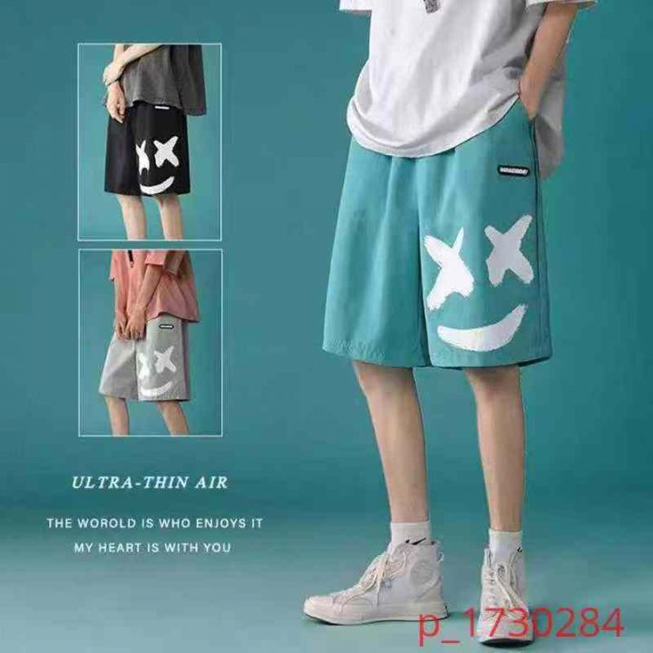 ☕️潮牌笑脸短裤男夏季薄款直筒宽松外穿运动潮流五分裤休闲中裤712条全清6...