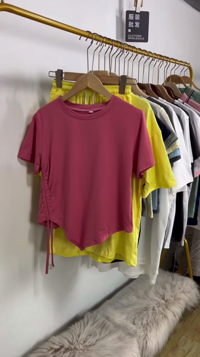 韩系vibe超好看抽褶收腰纯棉短袖T恤女夏季新款时尚百搭上衣,均码80-120斤...