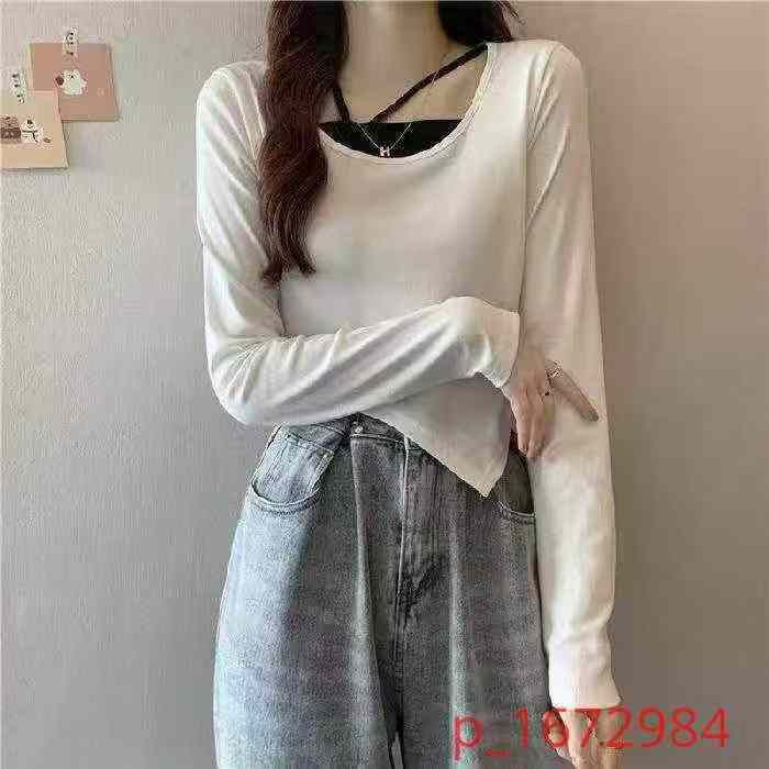 棉质假两件长袖66件7.5,面料柔软舒适高弹力,撞色拼接,下摆不规则,均码...