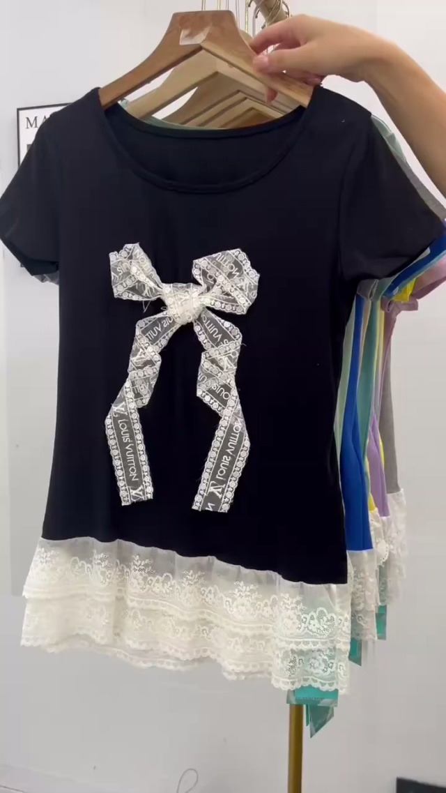 全清8.8元/清207件品牌甜辣风蝴蝶结蕾丝拼接短袖,单款多色,均码,面料纯...