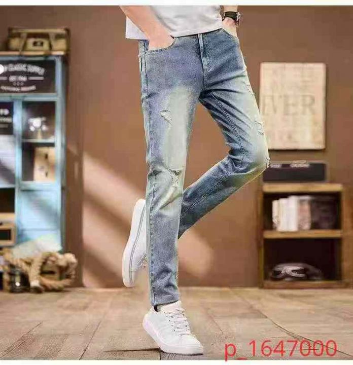 秋季新款男士高弹力复古蓝破洞设计款牛仔裤,独立包装带,码数28-30-32-34-...