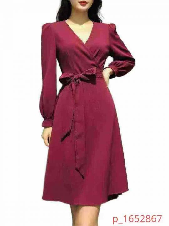 清货价8.9,数量147件左右纯色裹胸款春秋季衩领束带灯笼袖长袖连衣裙尺码S-...