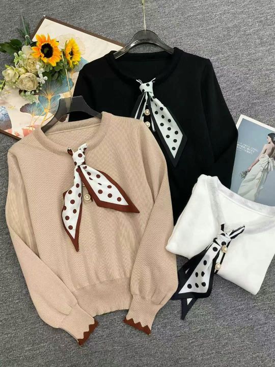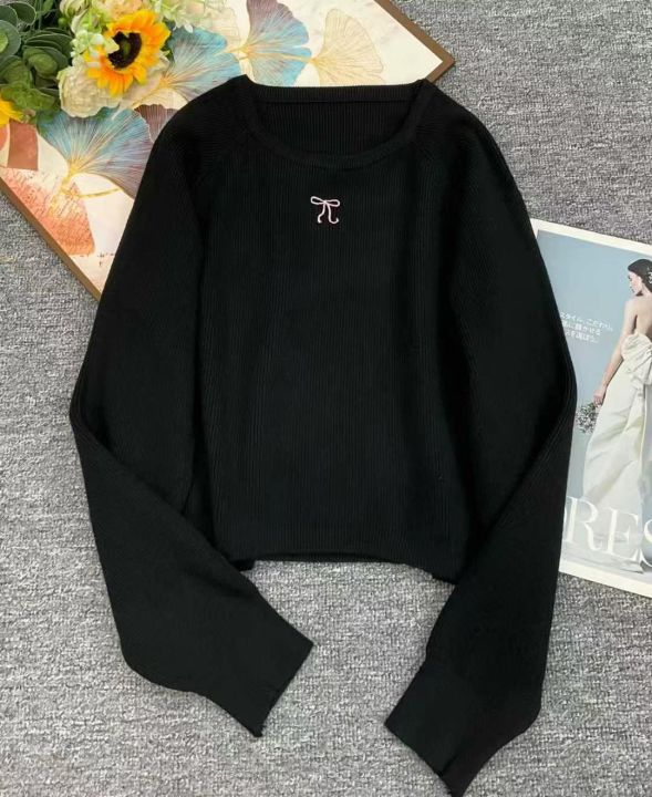 春季新款女装复古港味时尚蝴蝶结小香风套头毛衣,独立包装,均码面料柔软舒...