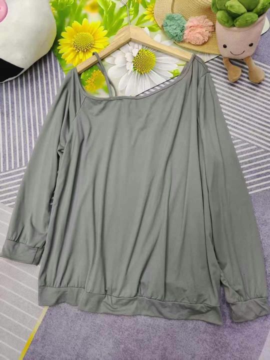 1800件夏季新款女装露肩吊带T恤女宽松简约通勤百搭斜领不规则长袖 S一4XL 3...
