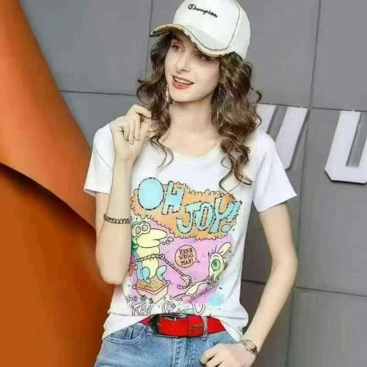 全清:7.9元2025新款夏季正肩纯棉短袖T恤女时尚百搭洋气减龄显瘦上衣 中长...