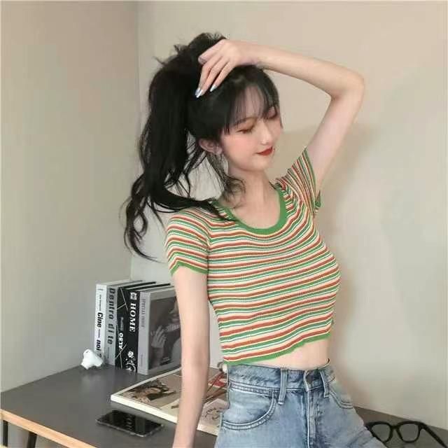 条纹辣妹短T恤,清2.99因为全部没有包装,工厂亏本处理,颜色多,面料基...