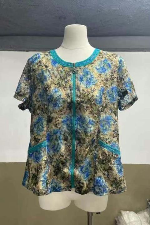 高品质台湾纱妈妈装圆领开衫修身短袖上衣,双层统一锦纶面料,单款单色,手...