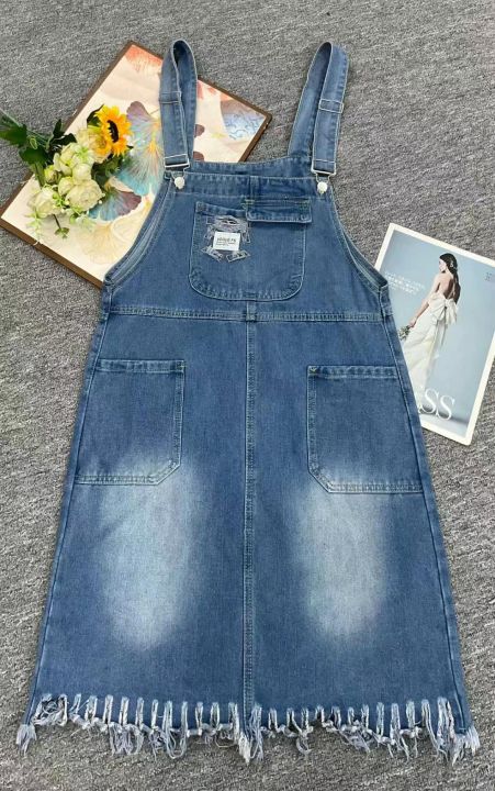 夏季新款洗水棉宽松显瘦毛边中长款牛仔背带裙,独立包装带腰卡,码数S-XL码...