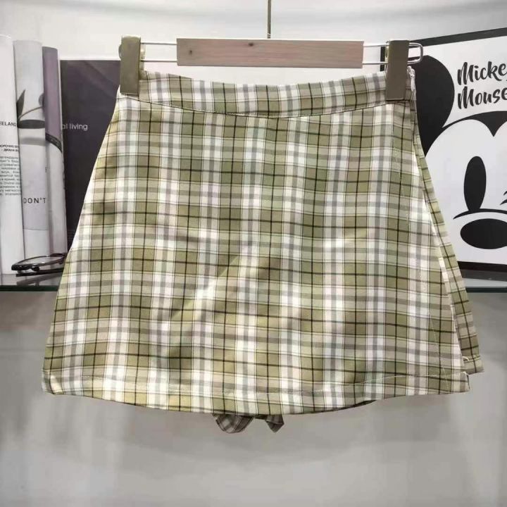 3.88元打包,夏复古学院风格纹高腰A字裙显瘦百搭包臀短裙,独立包装,S-XL...