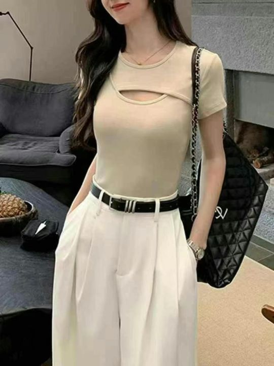 气质性感辣妹装显瘦镂空圆领百搭T恤,下图两个款,高弹力,品质好,数量310...
