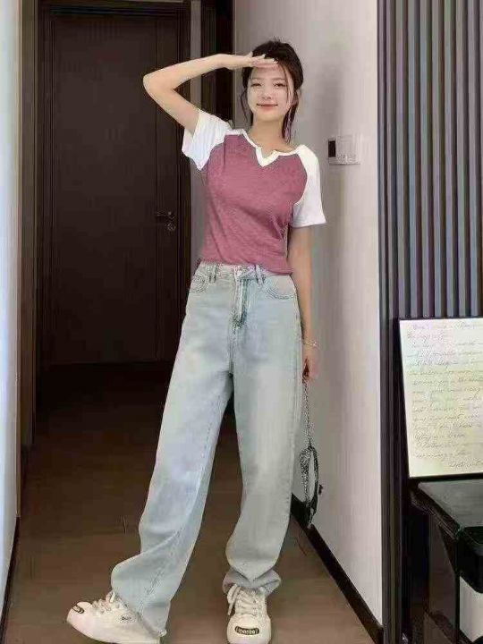 900多件辣妹撞色v领插肩袖时尚气质休闲百搭t恤上衣 ,尺码S~XL,面料柔软...