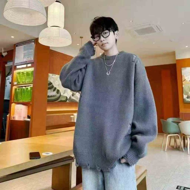 秋冬新款男士宽松慵懒风设计款圆领包芯纱套头毛衣,独立包装,单款多色,码...
