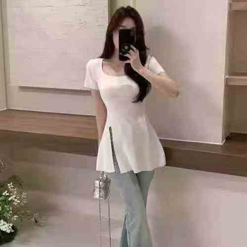 [月亮]:5.8清82件(不分货)[月亮]:夏季开衩设计中长款短袖上衣[月亮]:1...