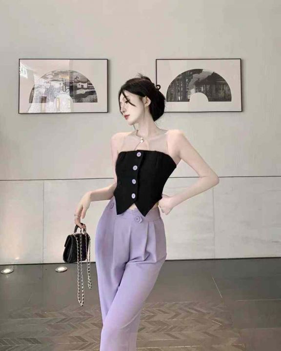 2.8元打包[勾引][勾引] 网纱拼接吊带背心独特别致纯欲甜辣妹性感一字肩上...
