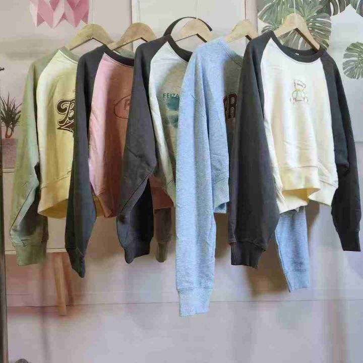 全清9.9元,短款卫衣插肩袖撞色女秋冬款2025新款无帽小个子宽松显瘦圆领上...