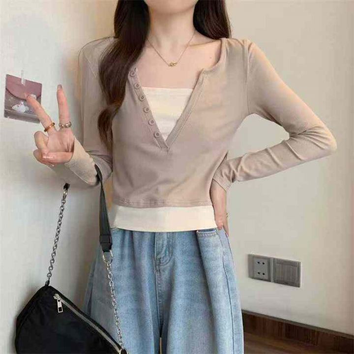 [發]撞色假两件辣妹纽扣v领长袖70件独立包装有吊牌 3个色 全清6.8...