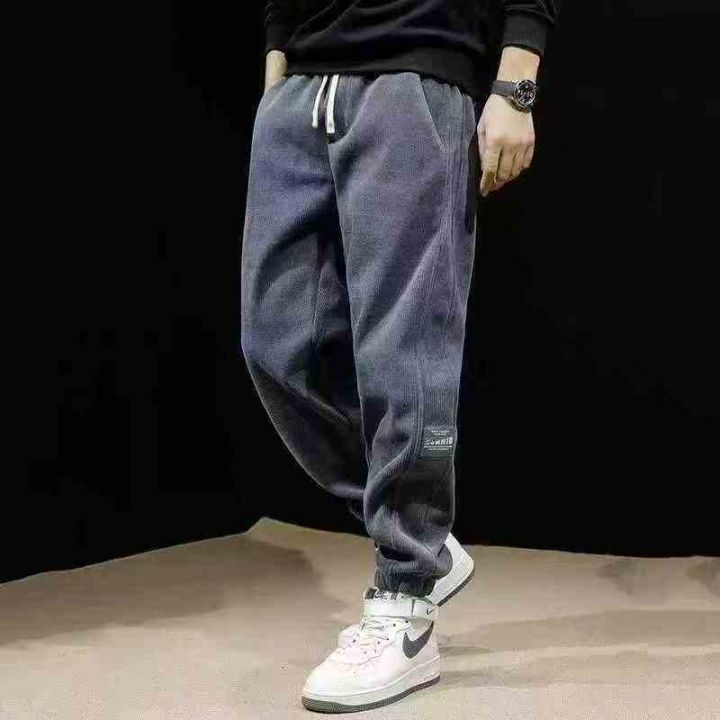 灯芯绒港风长裤男潮流宽松哈伦裤百搭运动休闲束脚裤,三个整款,前后设置有...