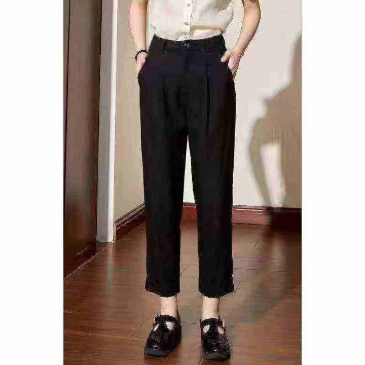 10.8清238条拉夏贝尔女装西裤 松紧腰头夏新款小个子高腰显瘦直筒休闲西装阔...