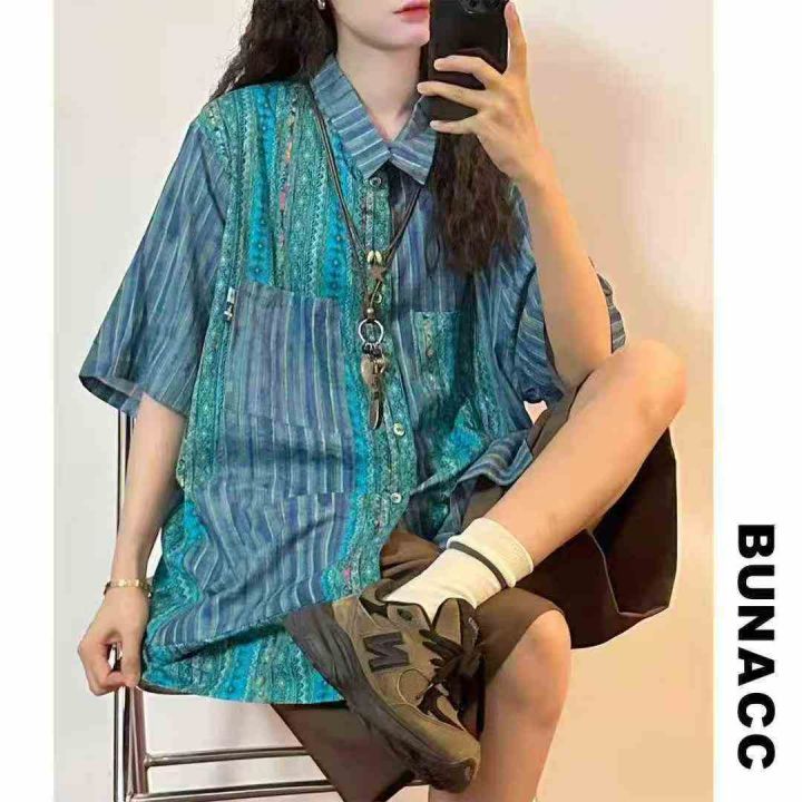 ① 夏季新款美式复古男女同款拼色设计短袖衬衣!版型宽松,整款三色,独立...
